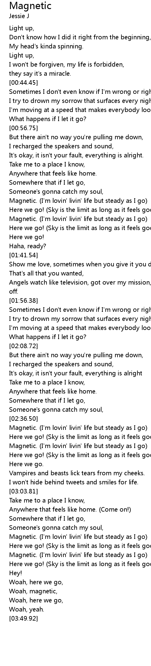 Magnetic. (I'm lovin' livin' life but steady as I go) |