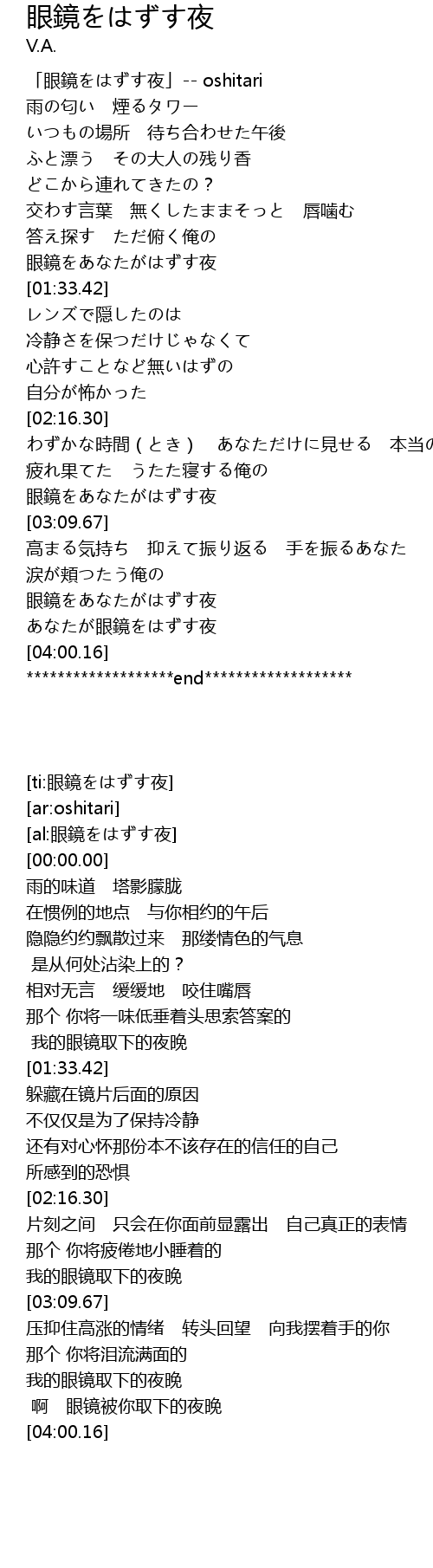 | [00:00.00] | 「眼鏡をはずす夜」-- oshitari |
