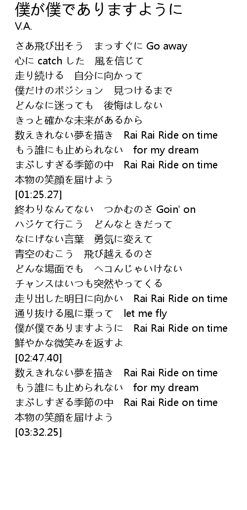 | [02:34.60] | 僕が僕でありますように Rai Rai Ride on time |