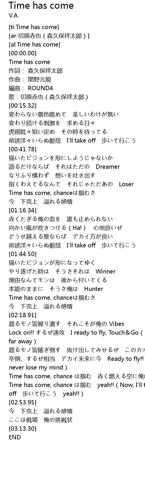 | [02:06.19] | Time has come, chanceは掴むさ |