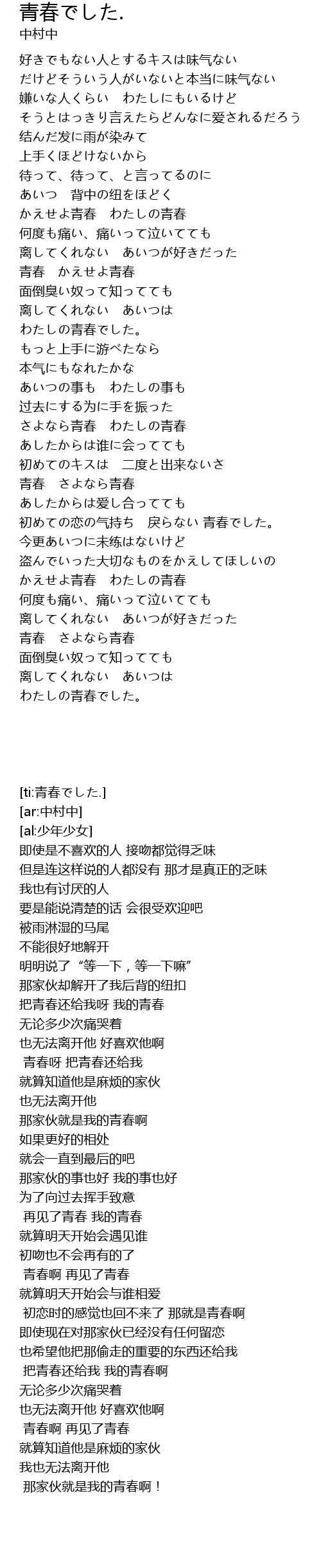 | 初めての恋の气持ち 戾らない 青春でした。 | |