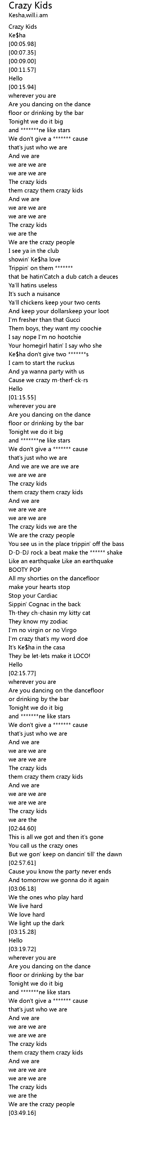 | [00:03.70] | Ke$ha |