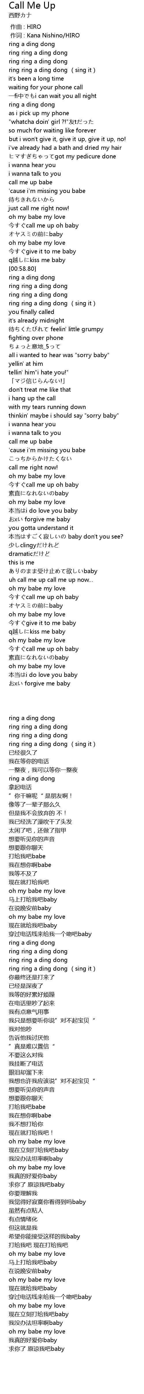 | [00:44.74] | 今すぐcall me up oh baby |