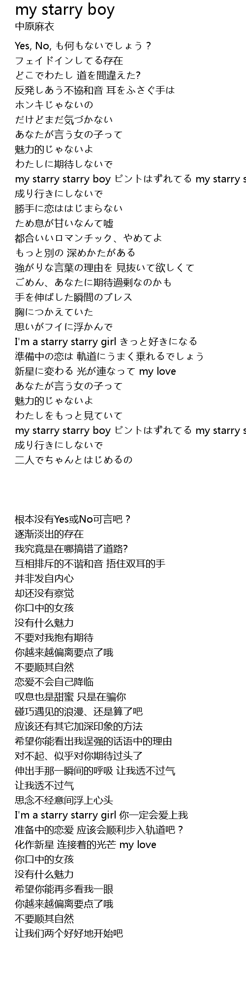 | [03:34.320] | my starry starry boy ピントはずれてる my starry starry boy |