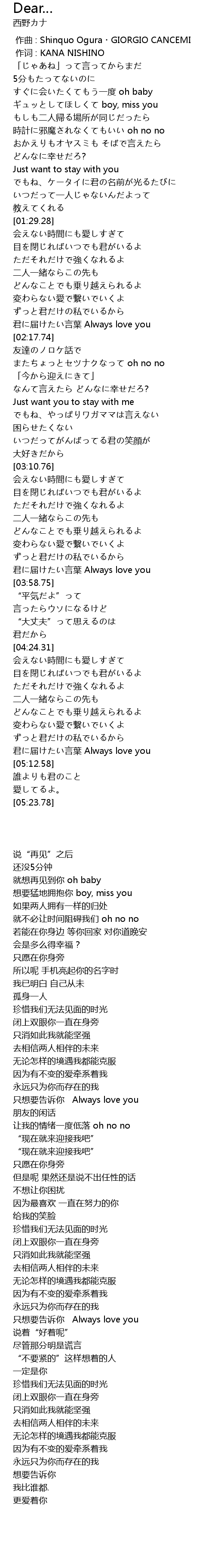 | [00:01.00] | 作词 : KANA NISHINO |