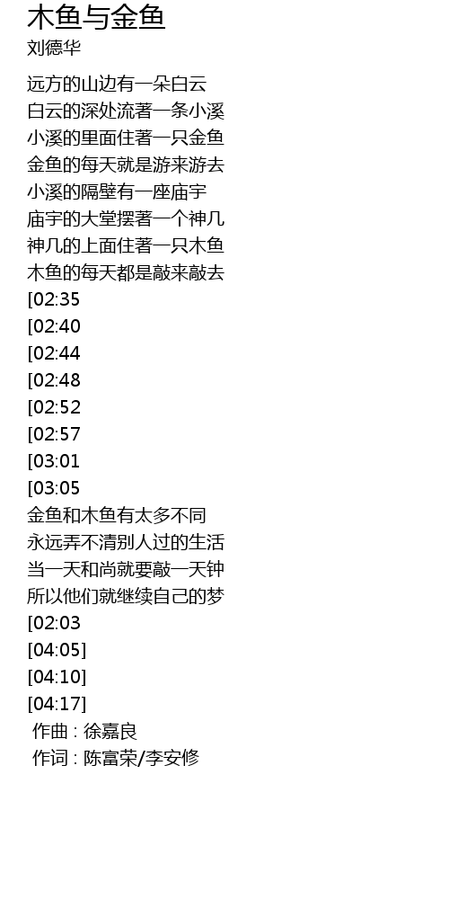 | [02:17] | 金鱼和木鱼有太多不同 |