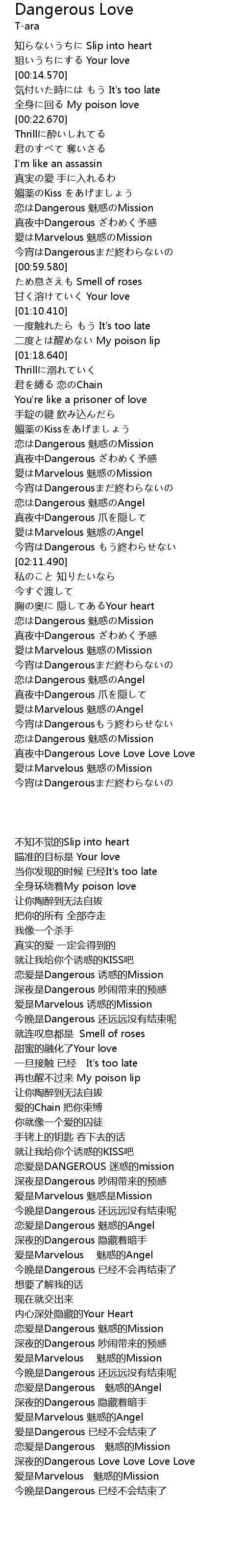 | [03:22.340] | zhen ye zhong Dangerous Love Love Love Love |