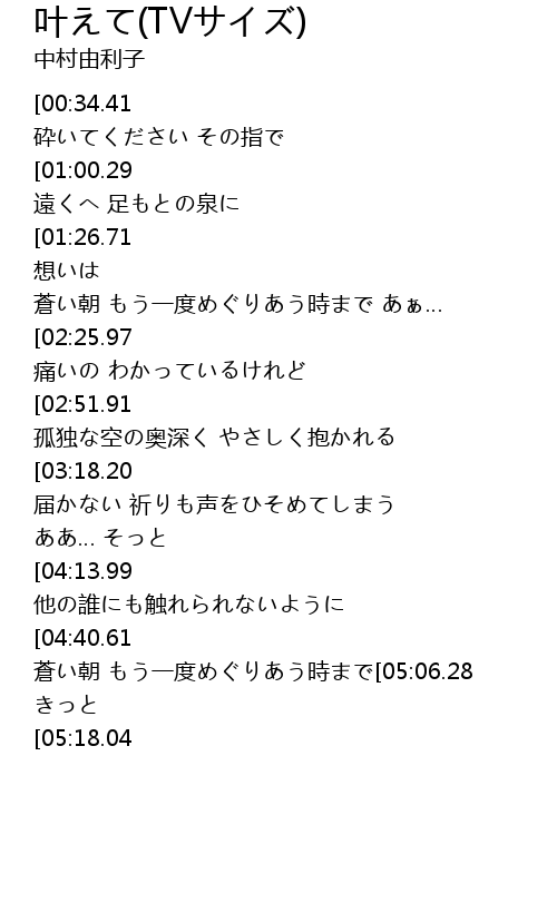| [05:14.08][05:18.04]叶えて 叶えて…[05:33.33] |