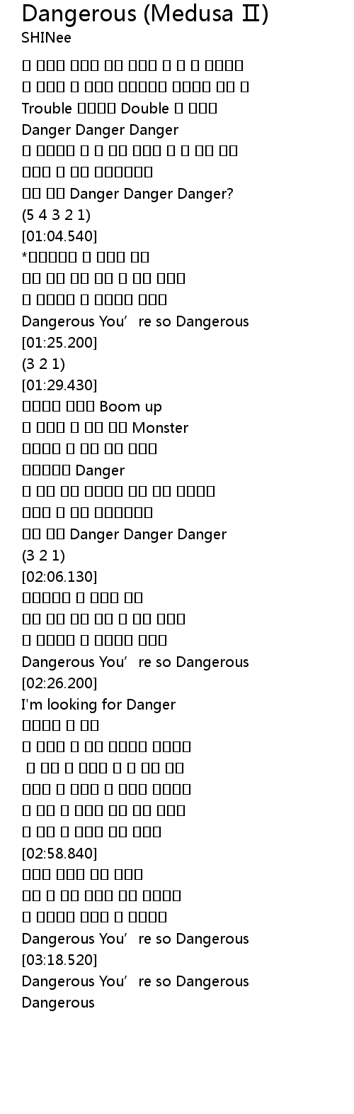 | [01:57.340] | 정말 이젠 Danger Danger Danger |