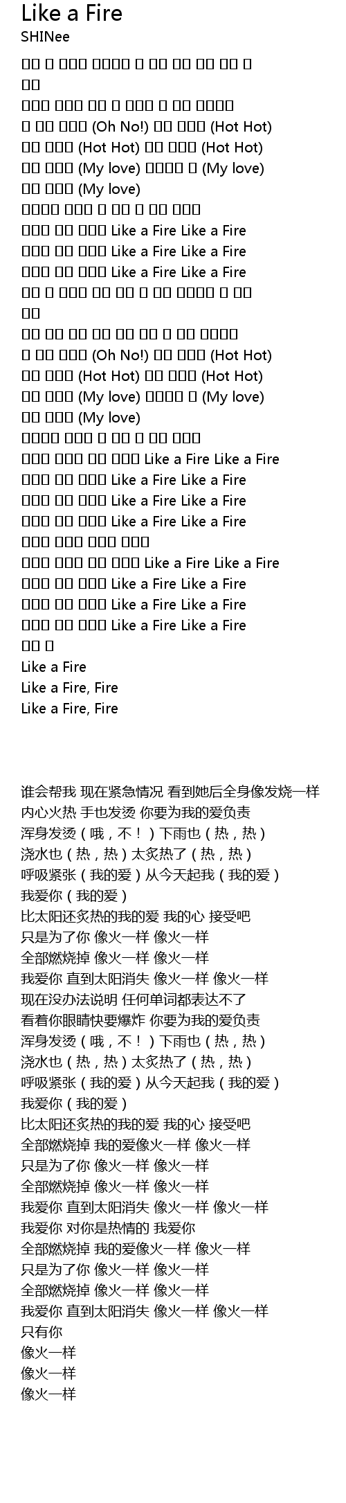 | [02:53.330] | 모조리 태울게 나의 사랑을 Like a Fire Like a Fire |