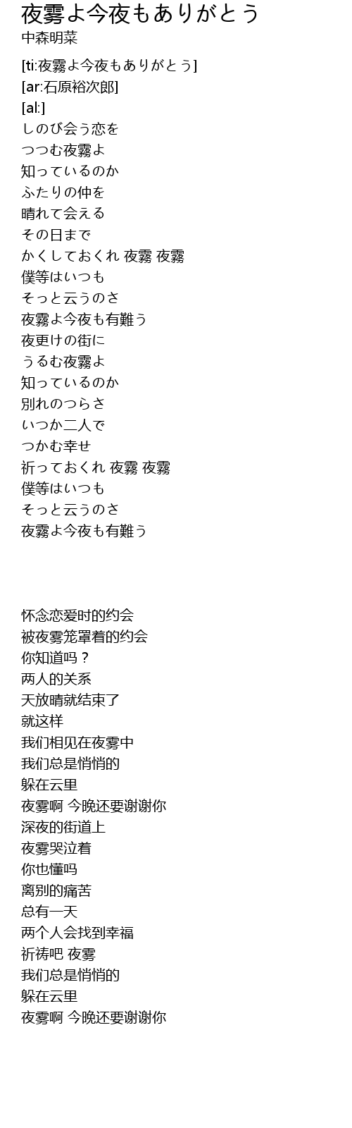 [ti:夜霧よ今夜もありがとう] |