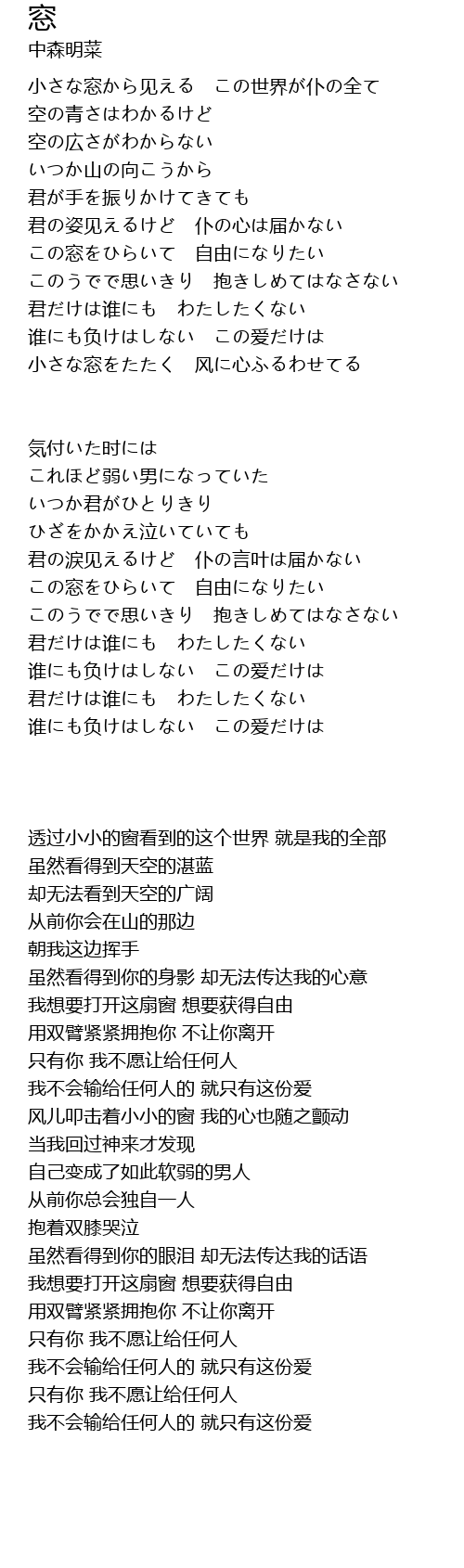 | 小さな窓をたたく 风に心ふるわせてる | |