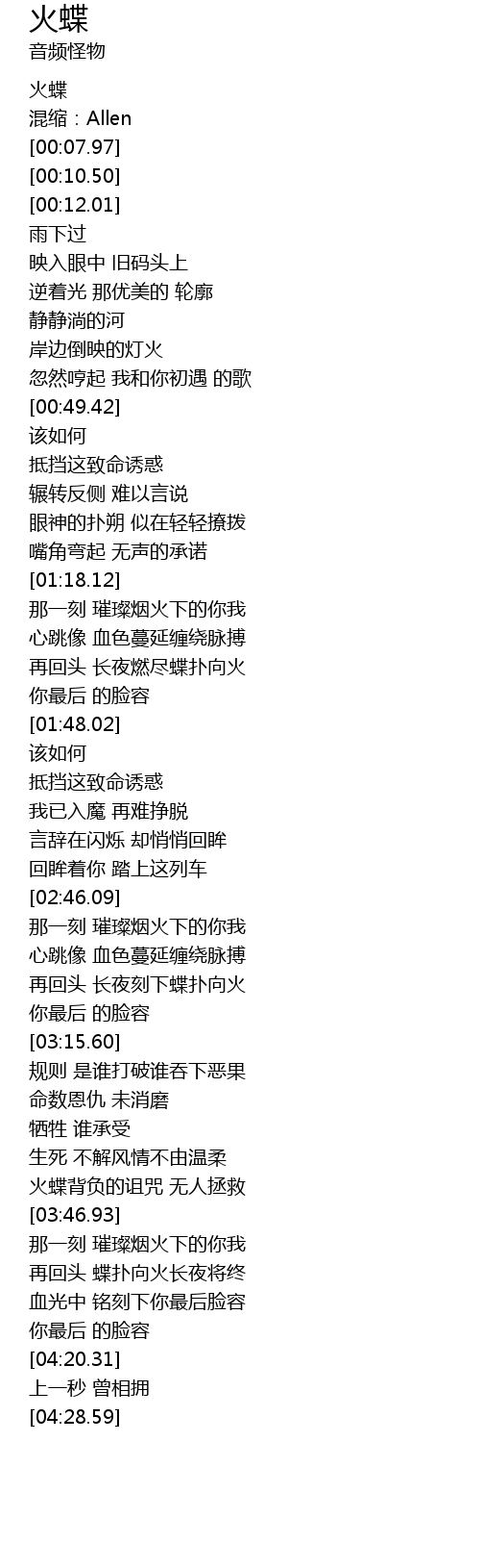 | [03:59.49] | 再回头 蝶扑向火长夜将终 |