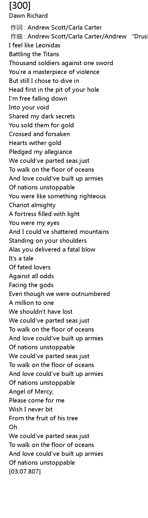 | [00:00.000] | 作词 : Andrew Scott/Carla Carter |