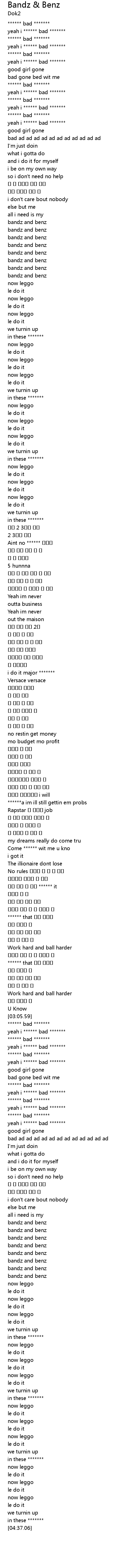 | [00:49.01] | bandz and benz |
