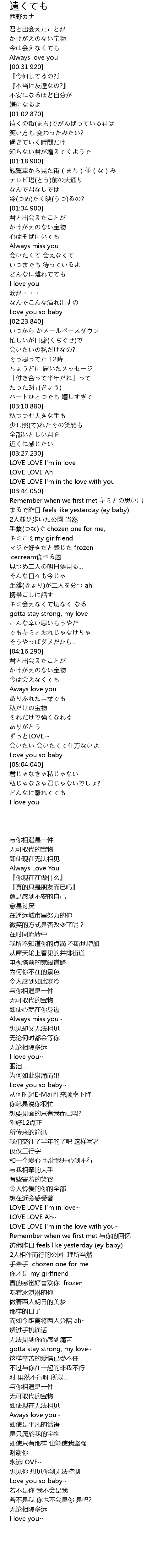 | [04:02.940] | 距離(きょり)が二人を分つ ah |