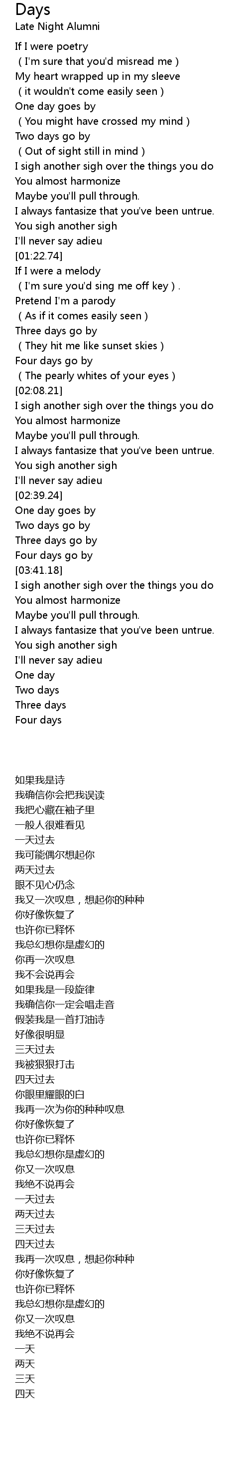 | [01:53.68] | Three days go by |