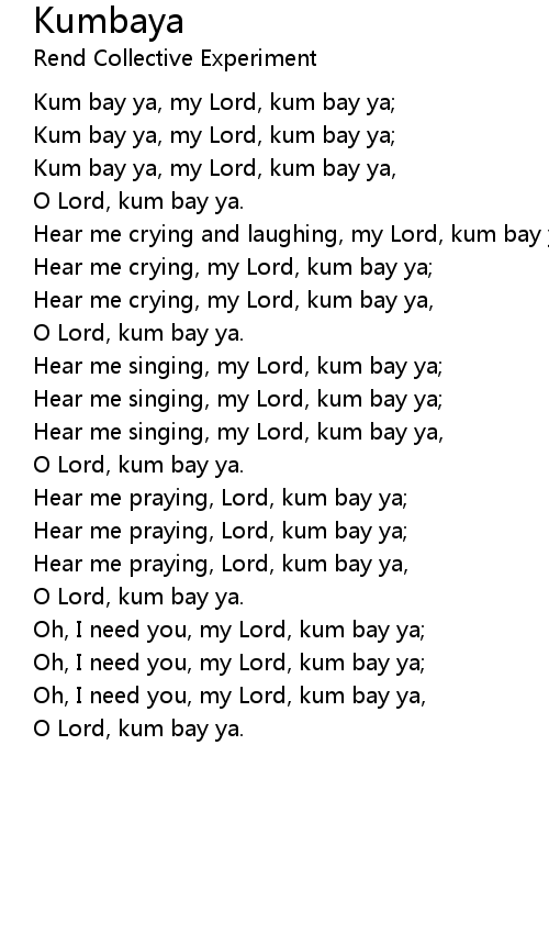 Hear me crying and laughing, my Lord, kum bay ya; |