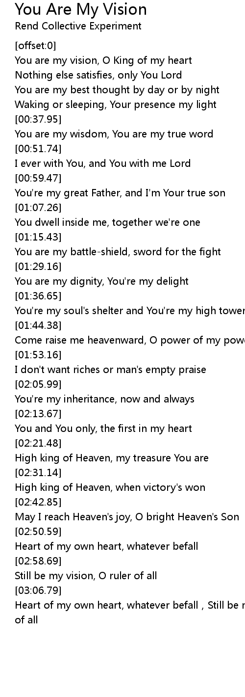 | [03:09.91] | Heart of my own heart, whatever befall,Still be my vision, O ruler of all |