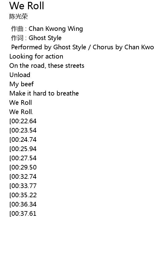 | [00:01.00] | Performed by Ghost Style / Chorus by Chan Kwong Wing |
