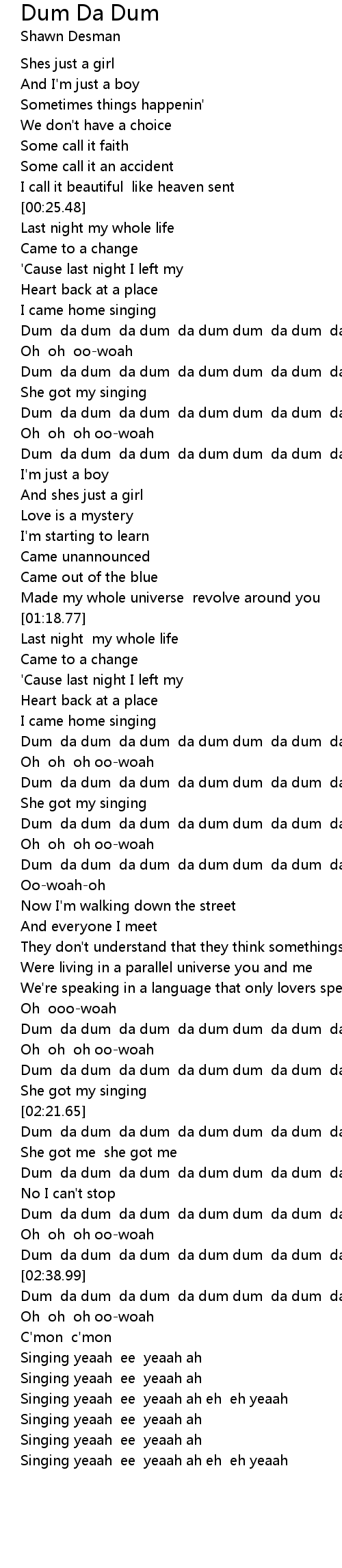 Dum da dum da dum da dum dum da dum da dum |