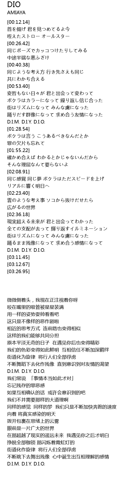 | [03:04.68] | D.I.M. D.I.Y. D.I.O. |