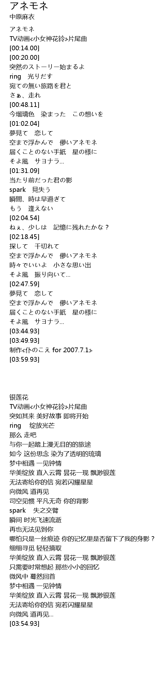 | [02:23.66] | 空まで浮かんで 儚いアネモネ |