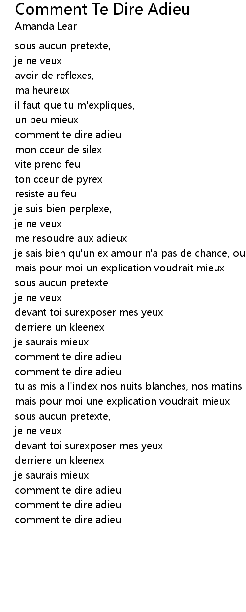 je sais bien qu'un ex amour n'a pas de chance, ou si peu |
