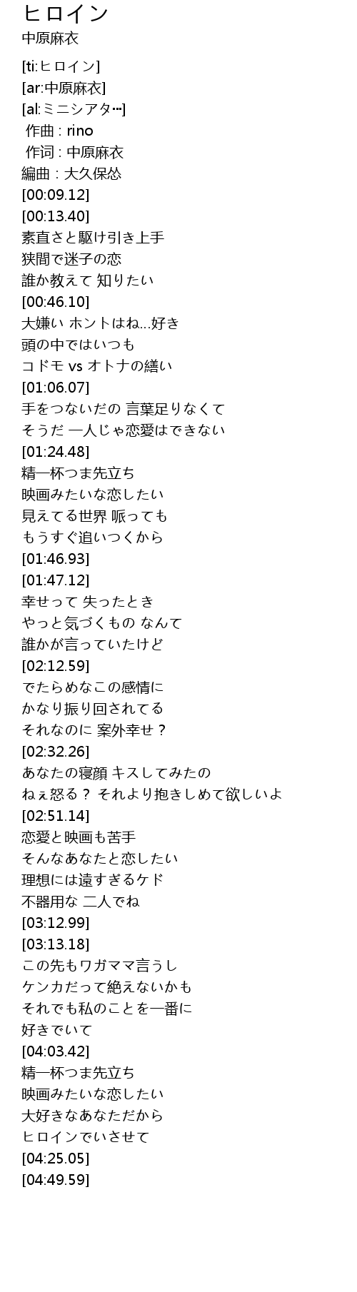 | [02:39.01] | ねぇ怒る? それより抱きしめて欲しいよ |