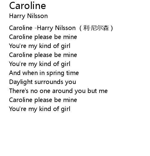 | [00:00.00] | Caroline -Harry Nilsson (利·尼尔森) |