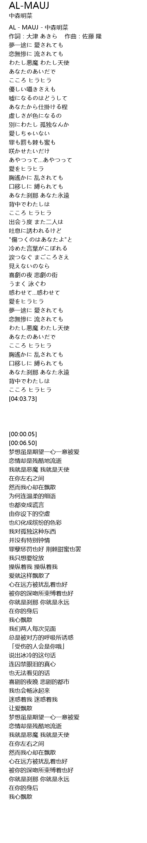 | [00:00.05] | AL-MAUJ - 中森明菜 |