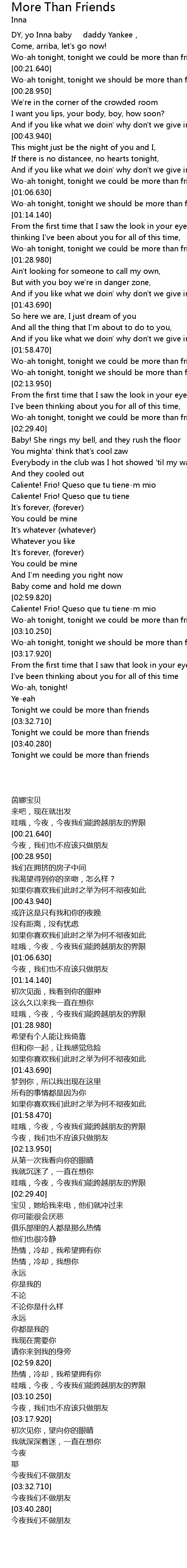 | [03:03.820] | Woah tonight, tonight we could be more than friends |