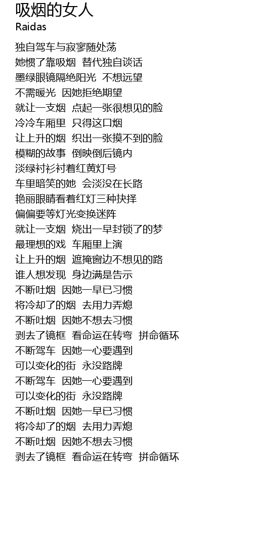 | [01:51.0] | 不断吐烟 因她不想去习惯 |