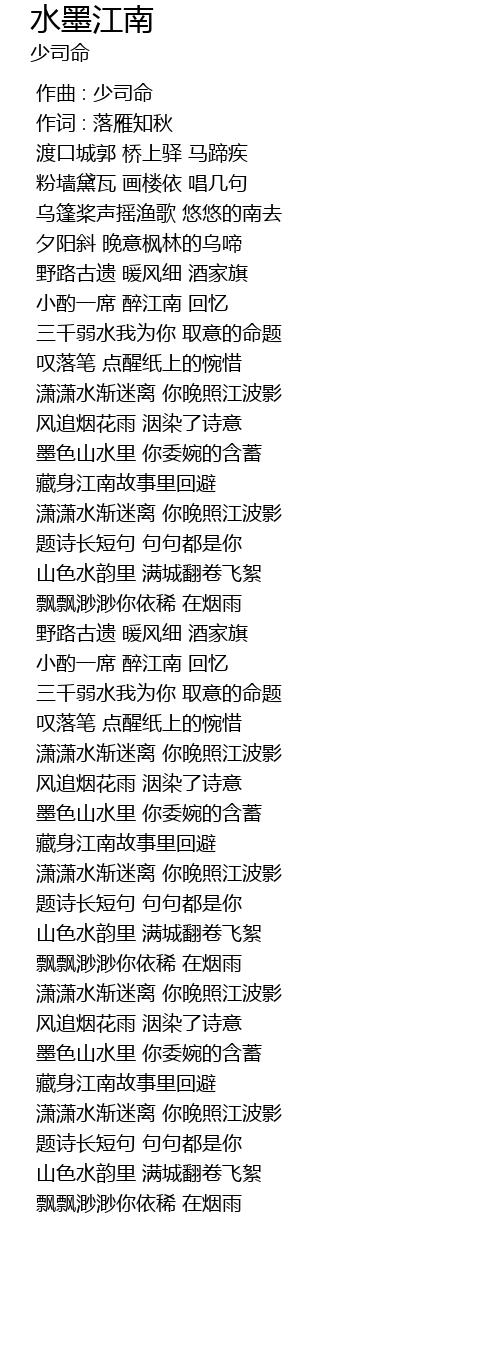 | [04:25.190] | 山色水韵里 满城翻卷飞絮 |