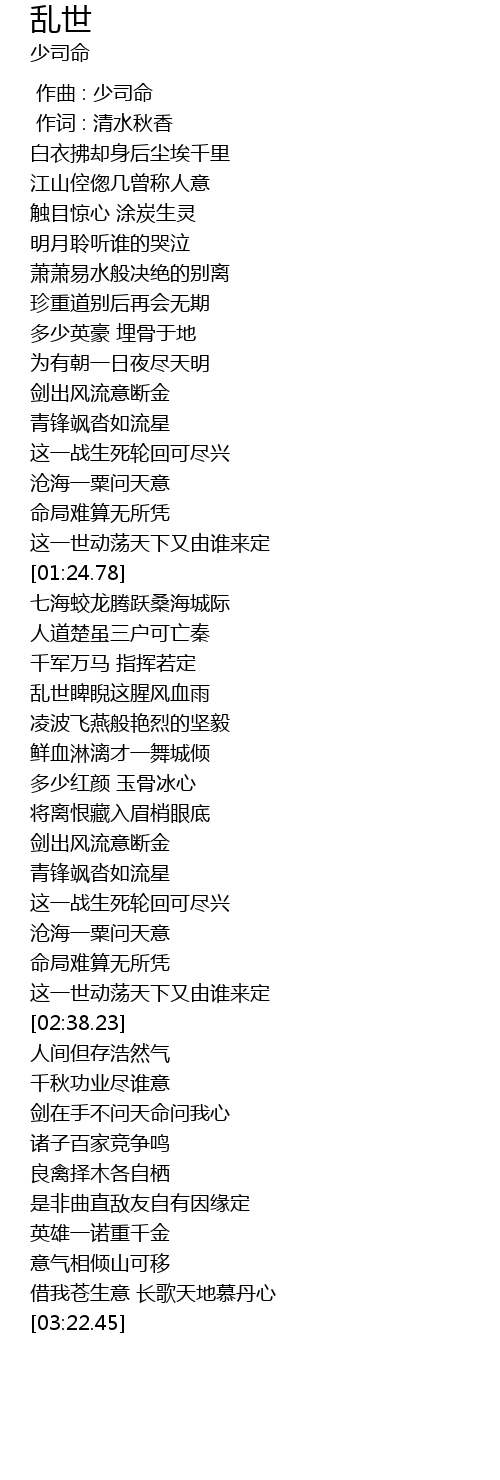 | [03:16.88] | 借我苍生意 长歌天地慕丹心 |