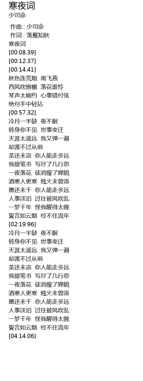 | [03:40.06] | 酒寒人更寒 烛火未曾添 |