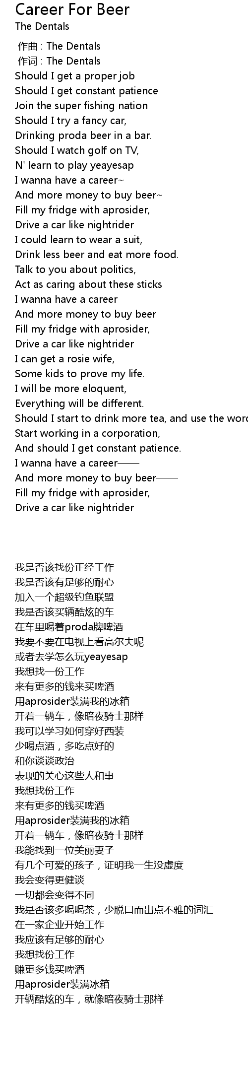 | Song | Career For Beer |