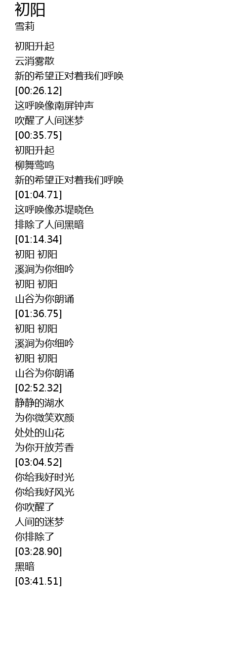 | [02:43.74] | 初阳 初阳 |