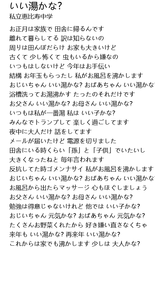 | お父さん いい湯かな? お母さん いい湯かな? | |