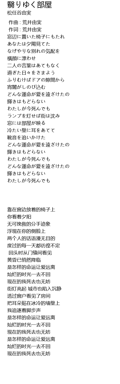 | [00:36.25] | 窓辺に置いた椅子にもたれ |