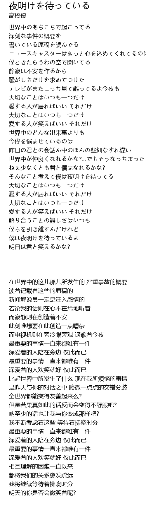 | Song | 夜明けを待っている |