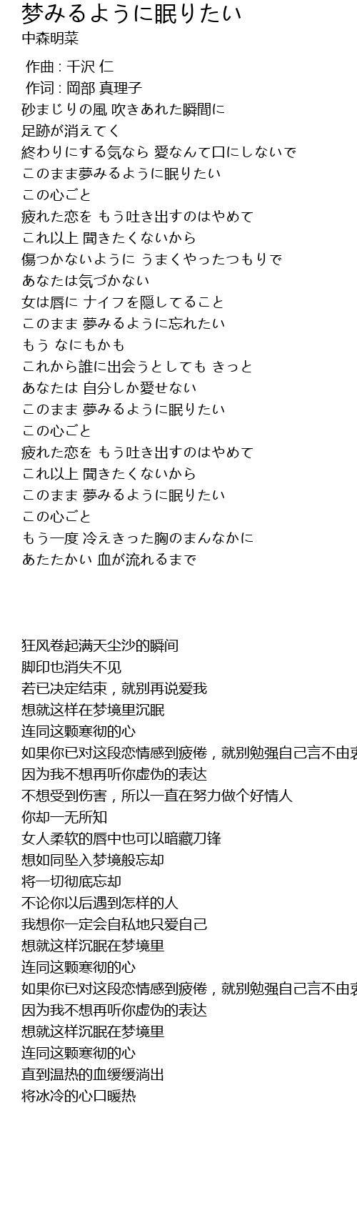 | [03:14.29] | このまま 夢みるように眠りたい |