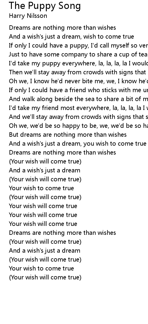 I'd take my puppy everywhere, la, la, la, la I wouldn't care |