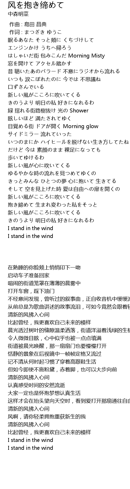 | [00:40.85] | はしゃいだ街 包みこんだ Morning Misty |