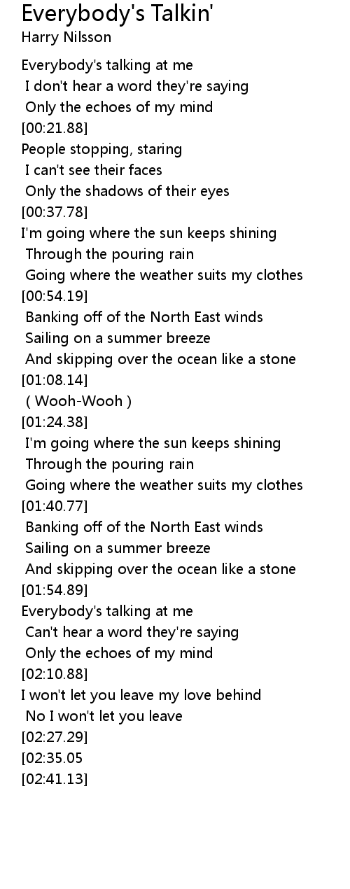 | [00:09.36] | Everybody's talking at me |