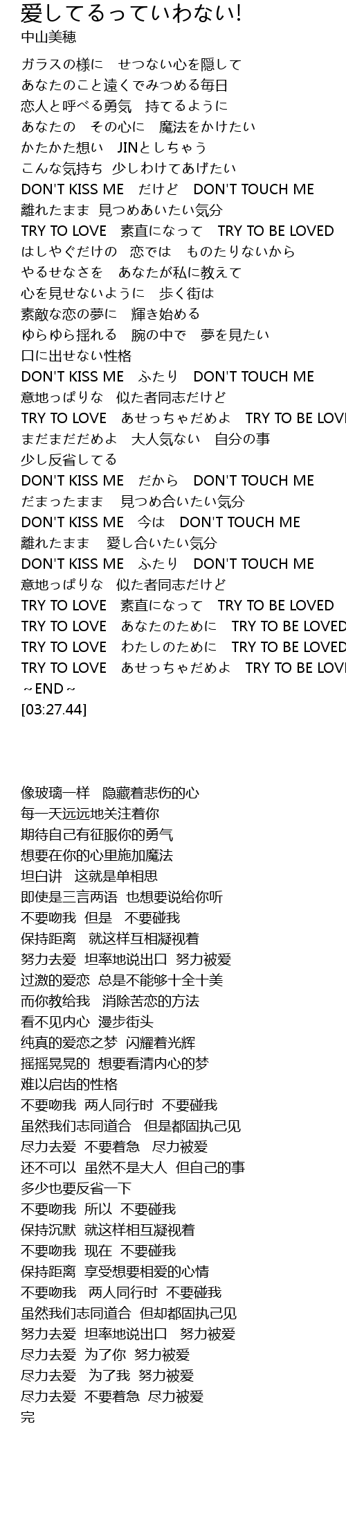 | [02:42.64] | DON' T KISS ME jīn DON' T TOUCH ME |