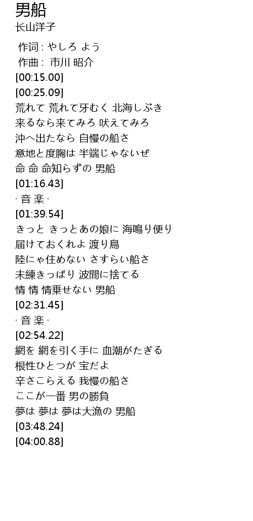 | [03:29.22] | 夢は 夢は 夢は大漁の 男船 |