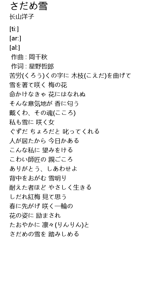 | [00:43.78] | 雪を著て咲く 梅の花 |