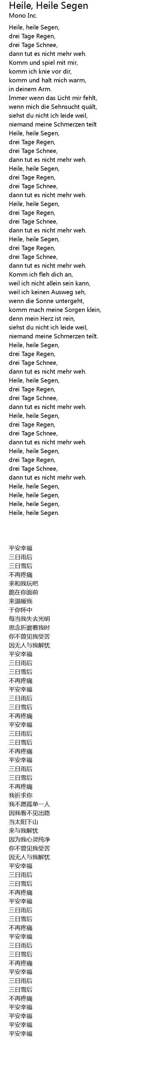 | [03:39.41] | Heile, heile Segen, |