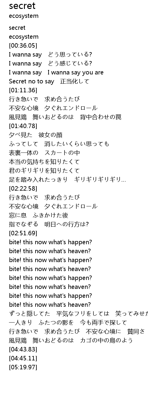| [01:05.92] | Secret no to say zhèng dāng huà |